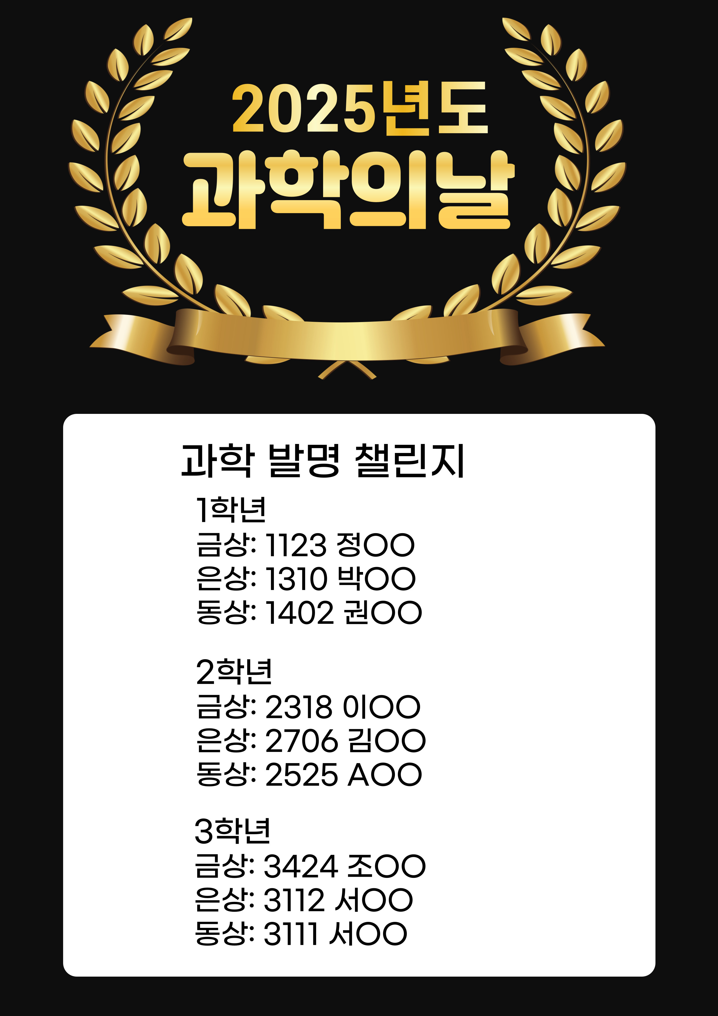 수상한 학생들 모두 축하합니다.