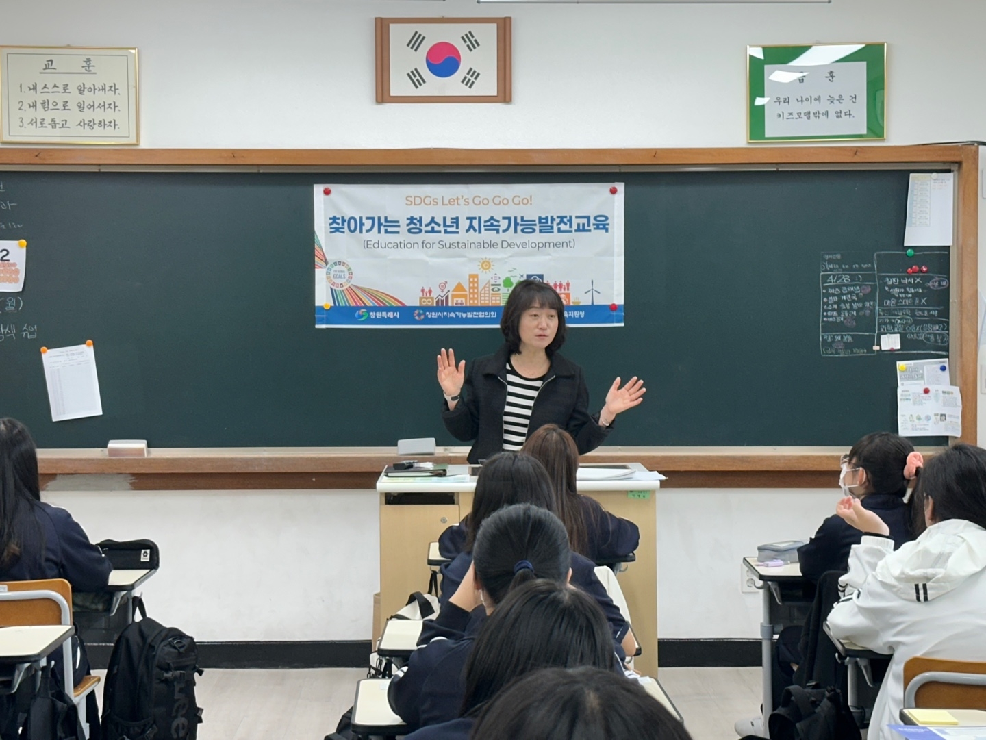 2025학년도 자유학기 진로탐색활동으로(1학년 대상) 청소년 지속가능 발전교육 프로그램을 외부강사와 함께 운영하였습니다.
